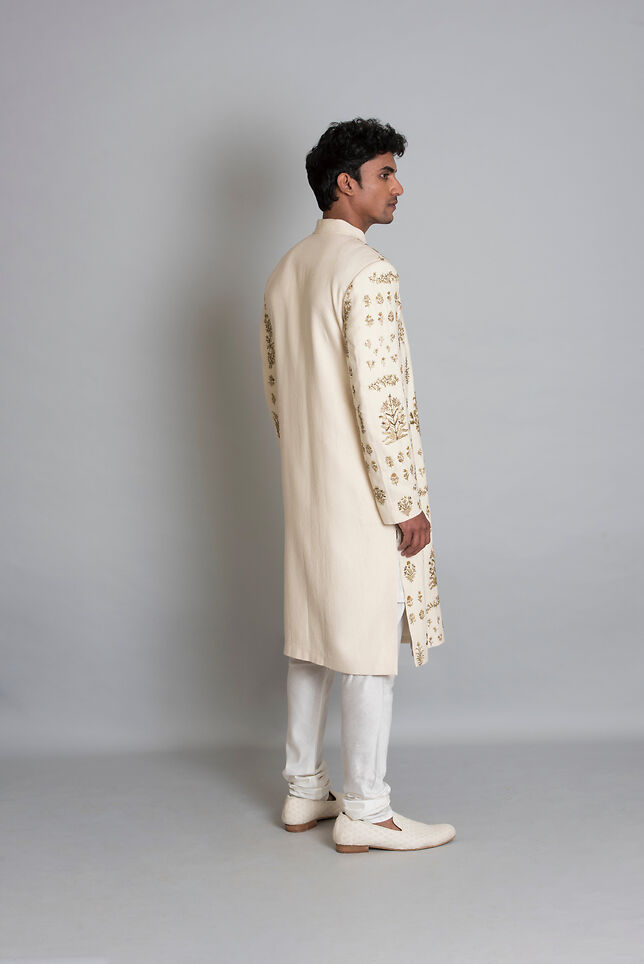 Description : Off white full hand embroidered sherwani.