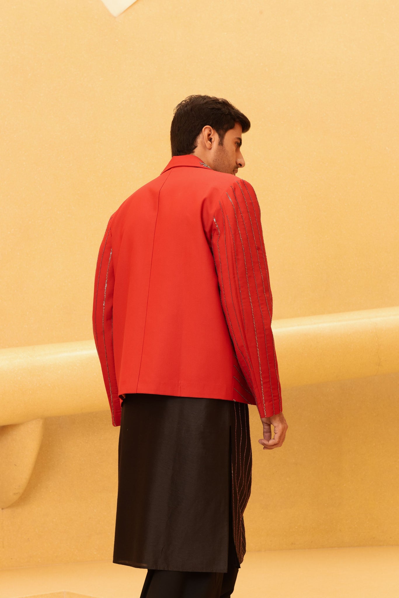Description : Red silver embroidered biker jacket